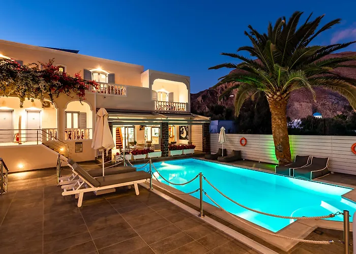 Localizado a 15 minutos de carro do Sítio Arqueológico de Akrotiri, o hotel de 4 estrelas fica a 8 minutos a pé do Parque Aquático de Santorini. A praia arenosa está a 30 metros de distância. As opções para o turismo cultural incluem Wine Museum Koutsoyannopoulos, a 6 km de distância. A paragem Bob's bar está localizada próximo do Stelios Place.